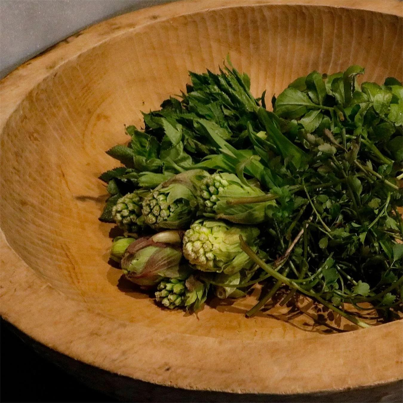 苦味や香りの野趣溢れる味わいを 2026/03/16 苦味や香りの野趣溢れる味わいを 有難く思うこの季節の野の食材 刹那刹那で移り変わる大地の味 #薪料理 #高崎ディナー #群馬グルメ #山菜 #自然の味