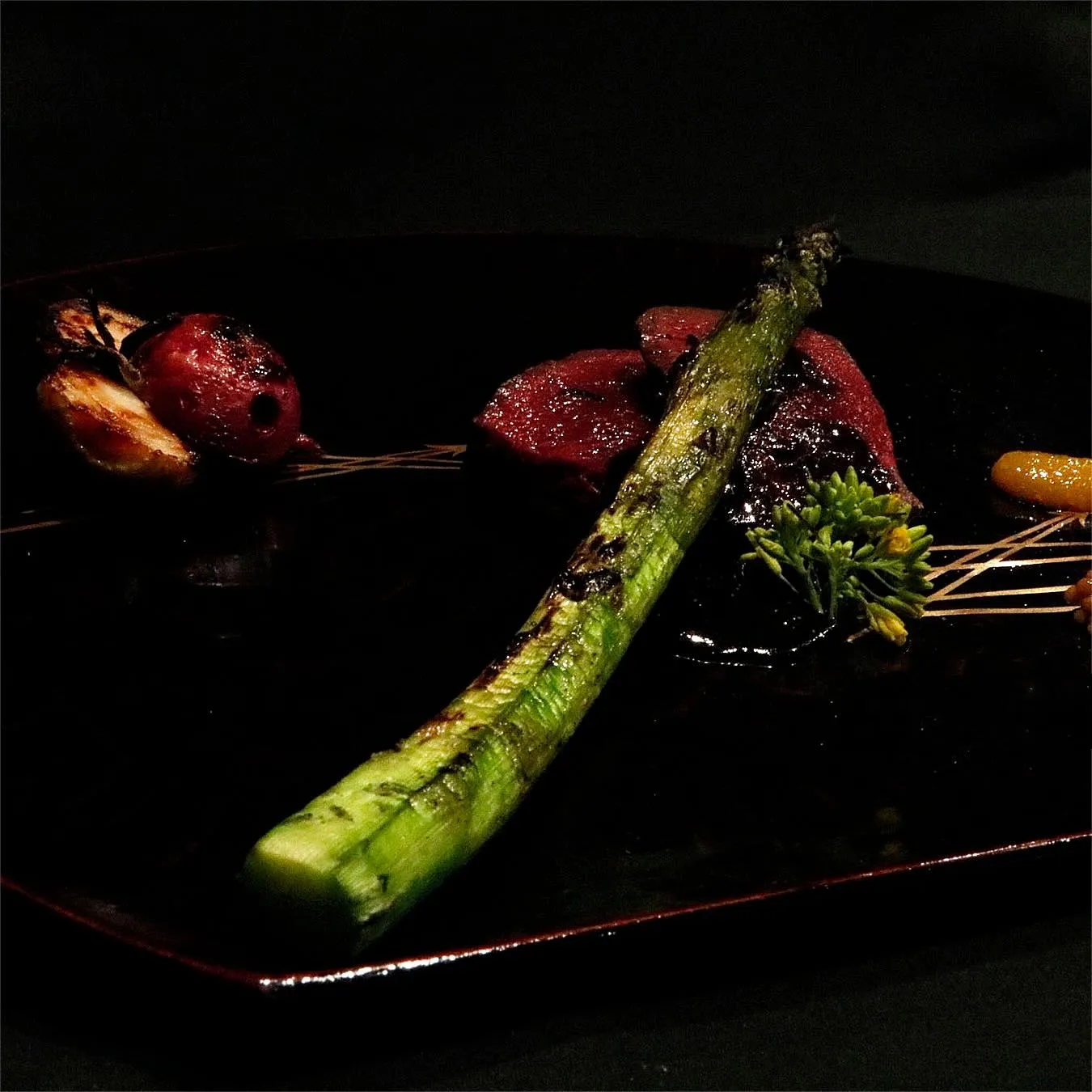 メインのお肉料理に引けを取らない存在感とアスパラが
