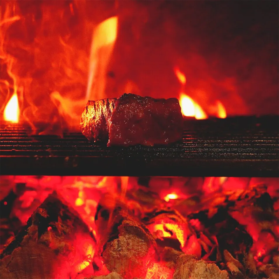 お客様の五感を刺激し、日常の喧騒から離れ、リラックスできる環境を意識して設計しております。8席のみのカウンター席では、炎の揺らぎが織りなす美しさと、料理人が薪火を操る真摯な姿を独占できる空間です。大人のための落ち着いた時間を提供するため、特別なひと時を過ごしていただける空間づくりに尽力し、記憶に残るようなディナー体験をお届けしてまいります。
